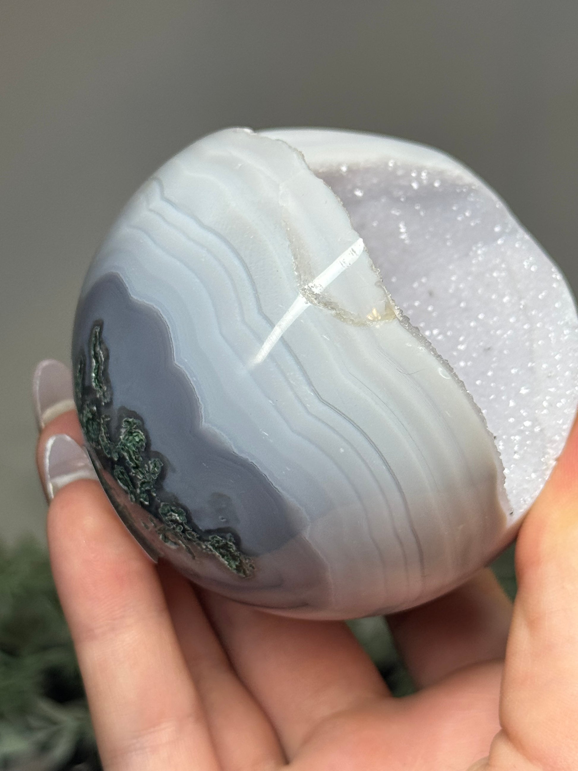 Agate sphere with moss agate